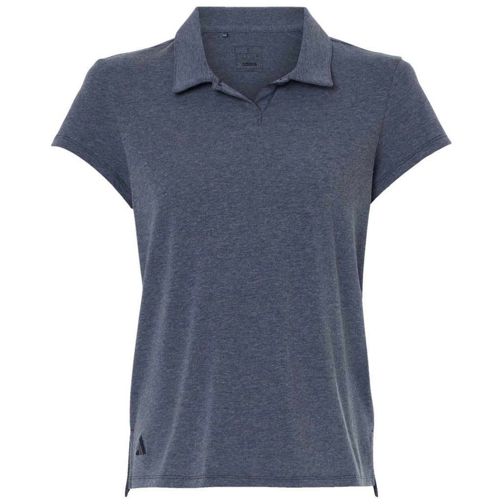 Try out a corporate logo on the Adidas Women's Collegiate Navy Melange Blend Polo to create a special option for trade shows, recruiting events, and charity events. The hi-low hem adds flair and side vents create a comfortable ventilation system while wearing. Perfect for golf, tennis, work, and everything in between.This product cannot ship outside of the United States
