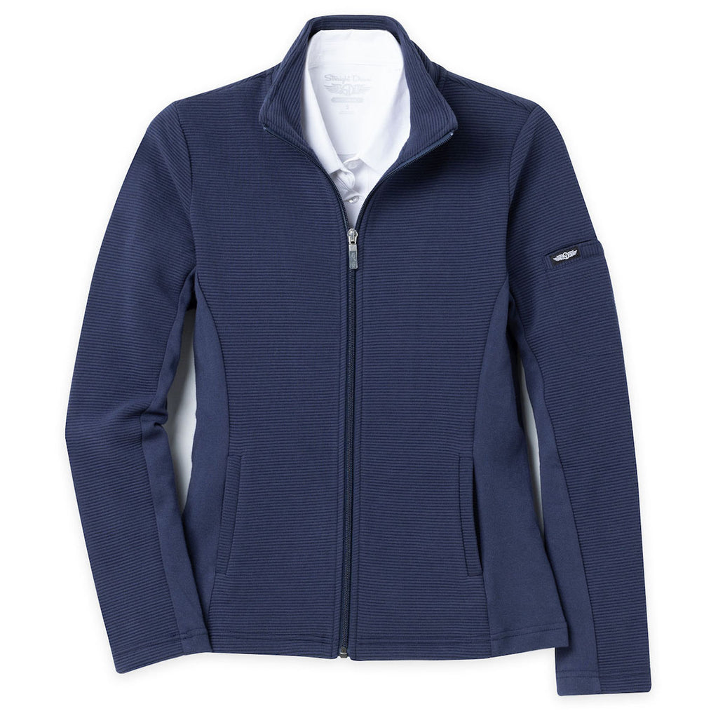 Elevate custom outerwear collections with the Straight Down Women's Indigo Swing Jacket. This lightweight piece blends function with fashion, offering wind protection in a modern A-line design. The standing collar and zip front give it polish, while the stretch fabric adds comfort, which is ideal for branding or upscale activewear programs.