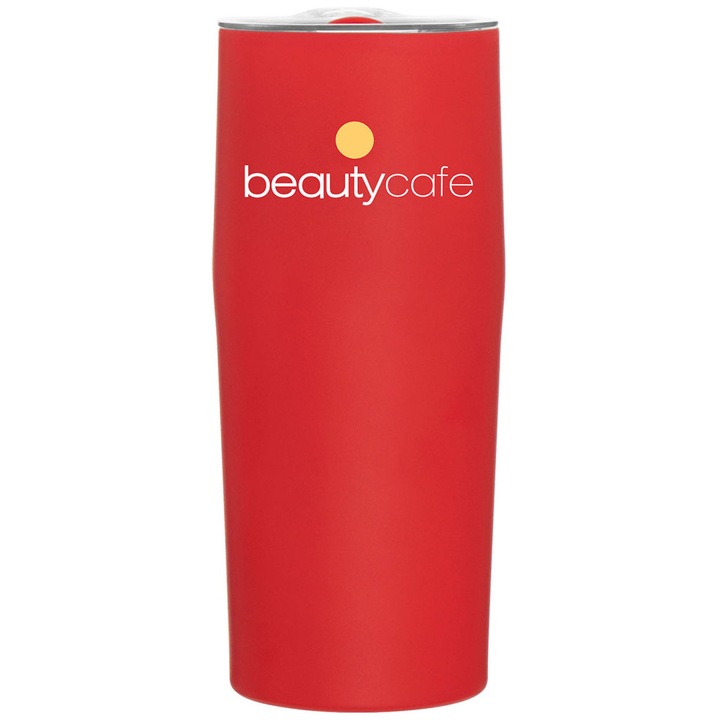 A corporate staple, the ETS Express Matte Red Kade 16.9oz Stainless Steel Tumbler keeps beverages at the perfect temperature for hours. Its sleek, durable design fits comfortably in hand and most cup holders, making it ideal for commutes and office use. A stylish and practical gift that ensures daily brand visibility.