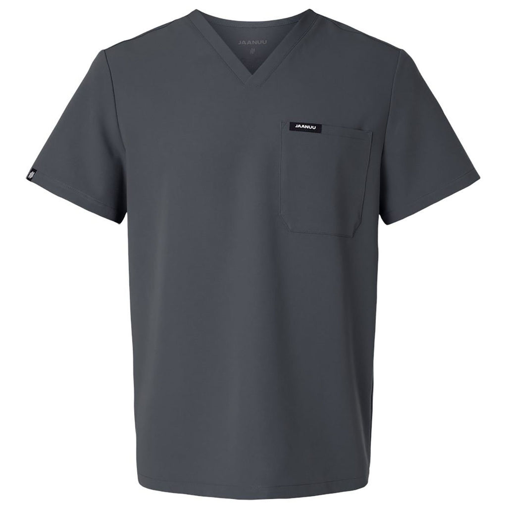 Jaanuu Men's Carbon Grey Holmes Everyday 1-Pocket Scrub V-Neck Top