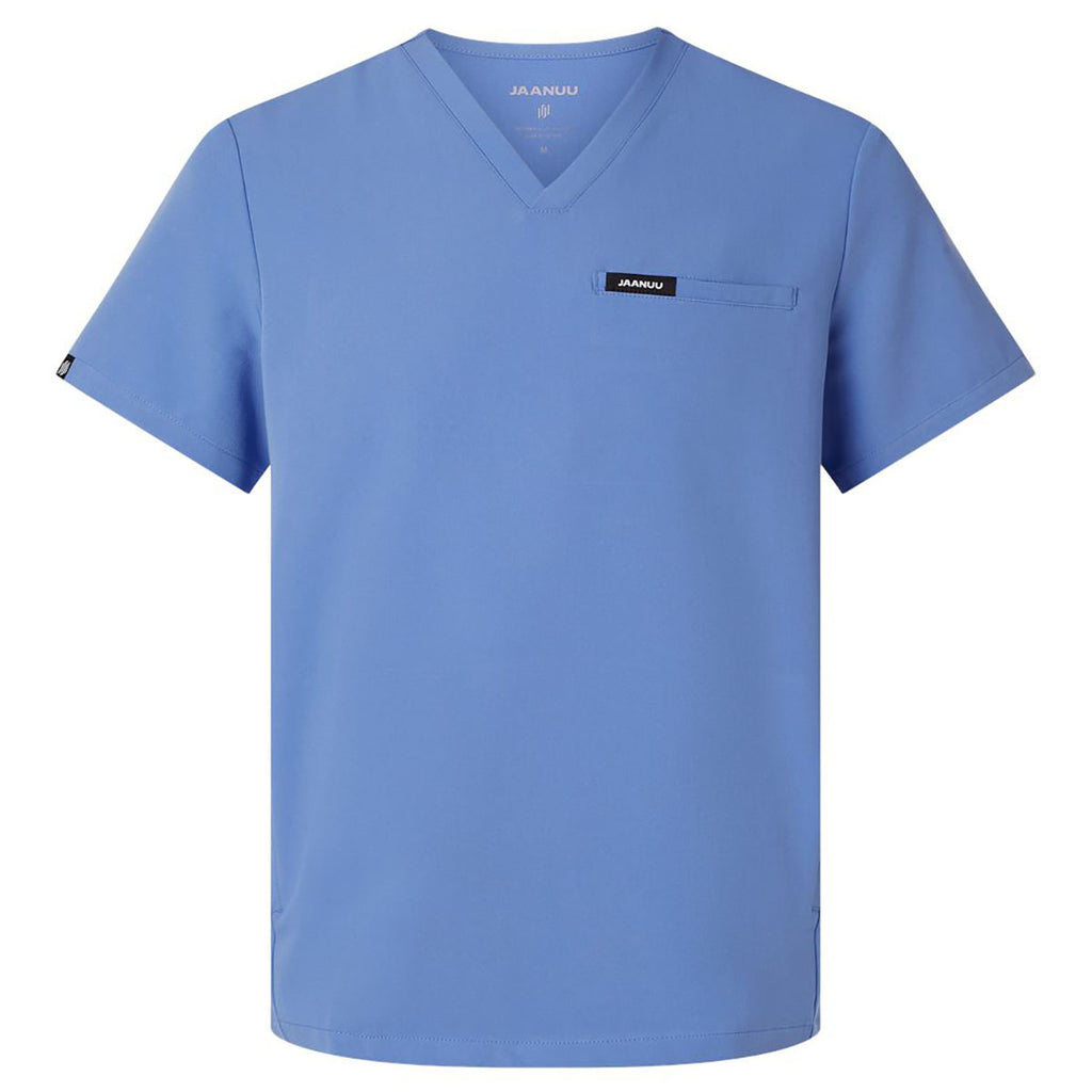 Jaanuu Men's Ceil Blue Platt 3-Pocket Scrub V-Neck Top