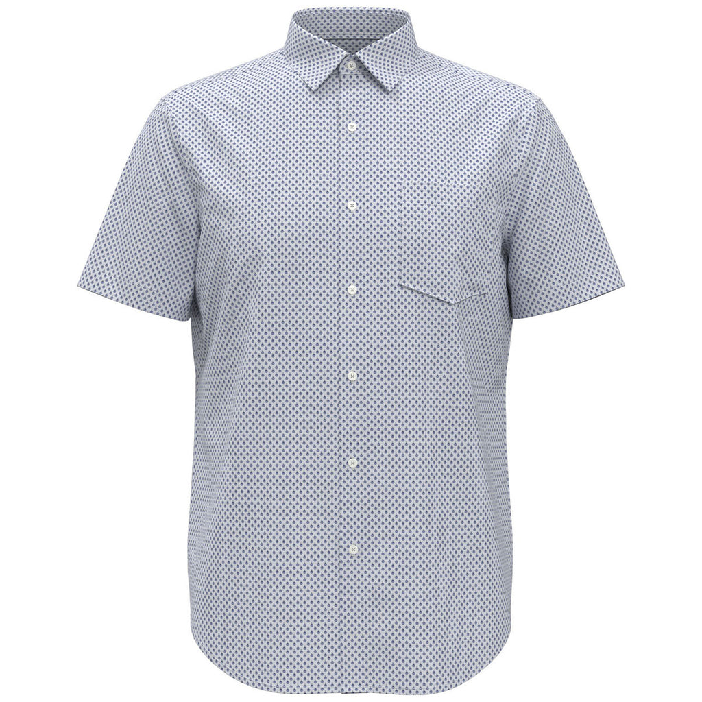 Up your style game with a custom Perry Ellis Men's Bright White Printed Short Sleeve Shirt. Made partially of recycled materials, this plain weave fabrication is made for durable and long-lasting wear with sun protection and moisture-wicking technology. Great for the office, going out, or creating a look that is unique to you.