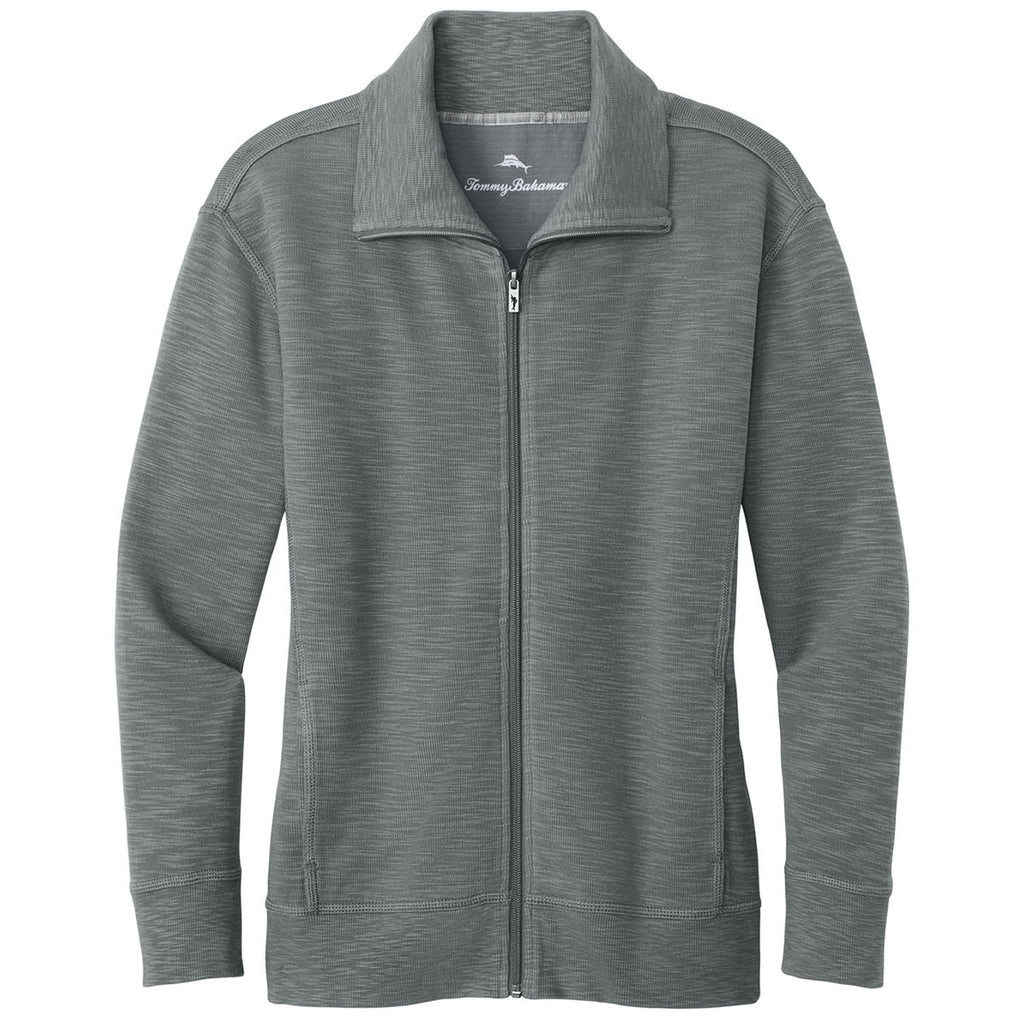 The Tommy Bahama Women's Cave Grey Tobago Bay Full-Zip with a custom logo offers a relaxed yet refined look perfect for casual outings and professional environments. Crafted from soft, breathable fabric, it provides superior comfort with a flattering fit. This versatile jacket combines style, comfort, and performance, whether enjoying leisure time or commuting.This product can only ship within the United States and Canada.
