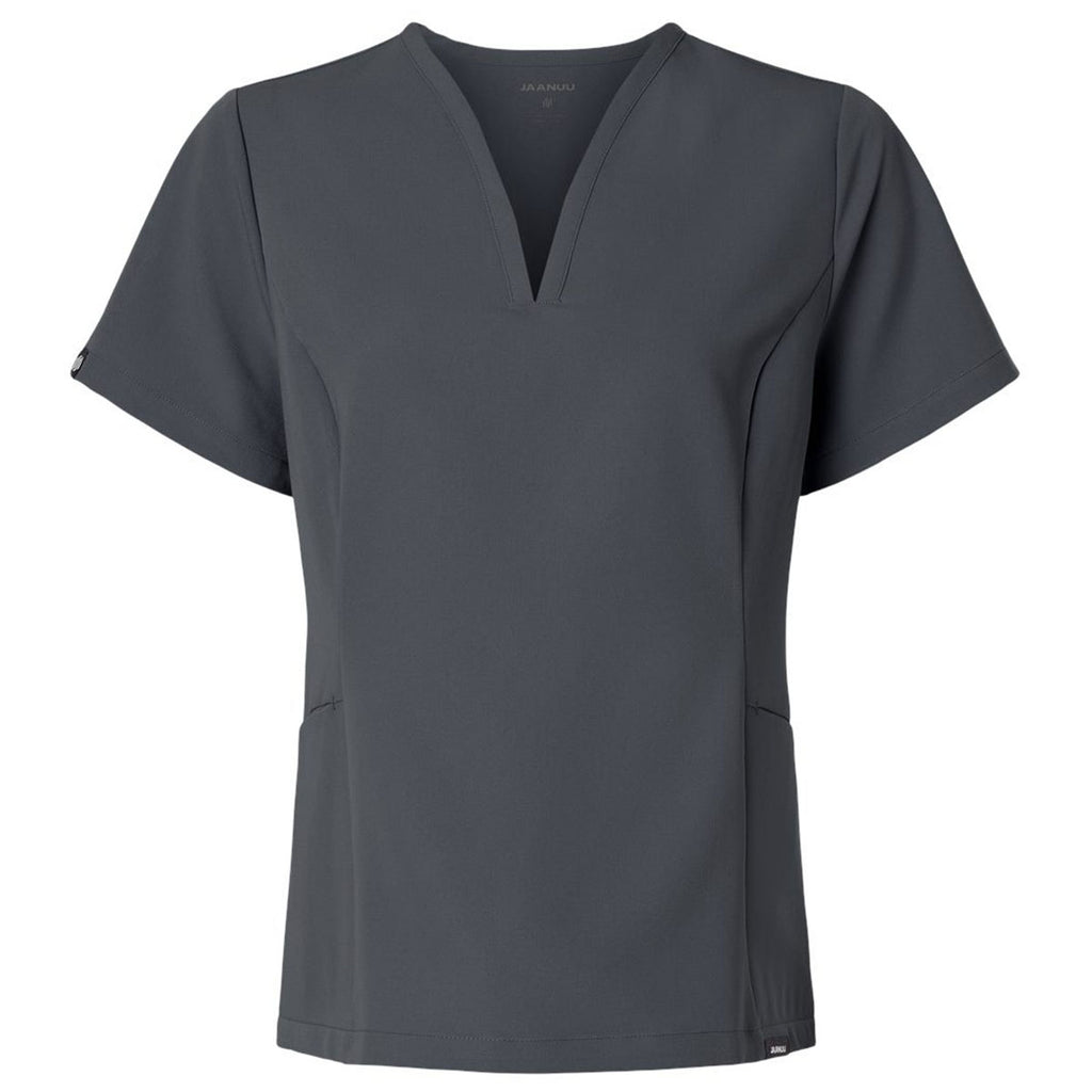 Jaanuu Women's Carbon Grey Calix Fit & Flare Scrub V-Neck Top