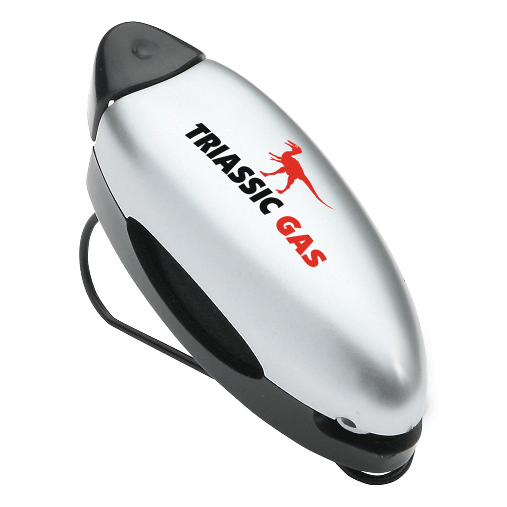 - Clips onto car visor, purse strap, belt or pocket