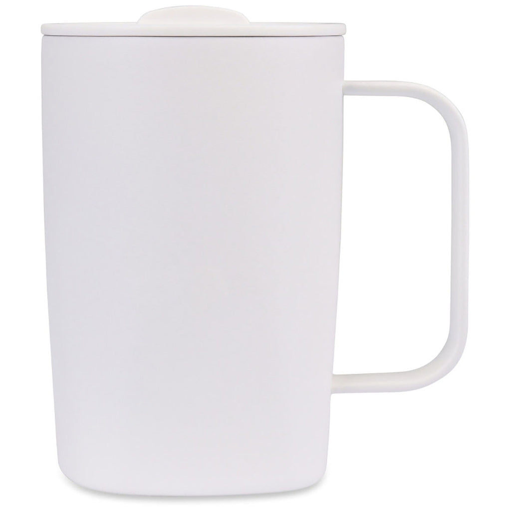 Aviana Marshmallow Rowan Recycled Mug - 15 Oz. with a corporate logo is a fun and eco-friendly way to offer guests coffee mugs that can be used as gifts. The stainless steel mug is sweatproof with a leak-resistant lid, making it great for coffee or tea on the go, on your morning commute, or as you lounge at home.