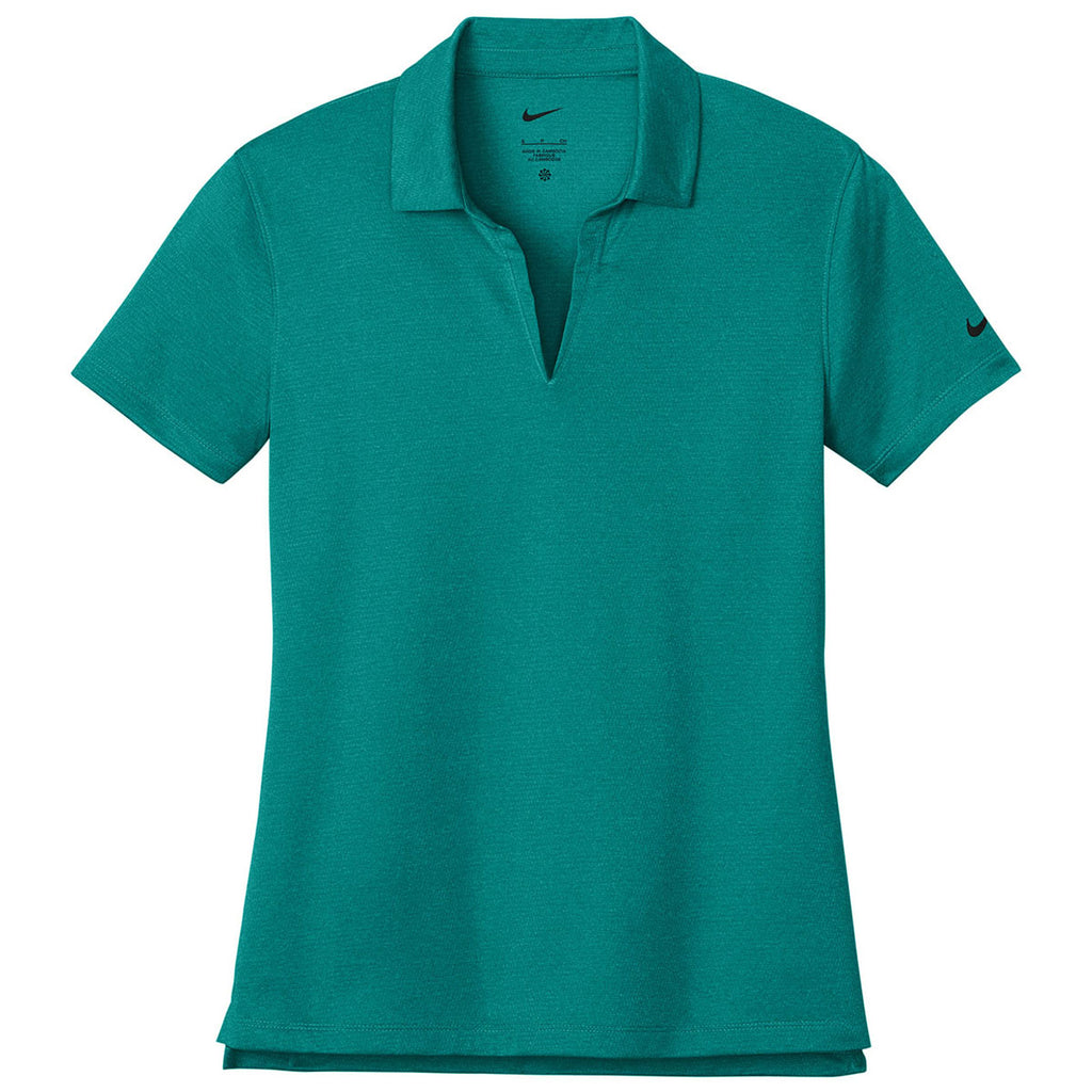 Enjoy a custom logo on the Nike Women's Bright Spruce Heather Dri-FIT Smooth Heather Polo, which offers a polished look with performance benefits. Designed with moisture-wicking Dri-FIT fabric, this polo keeps you cool and dry throughout your day. Its soft, heathered texture adds a touch of style, making it perfect for active days or professional settings that require both comfort and sophistication.