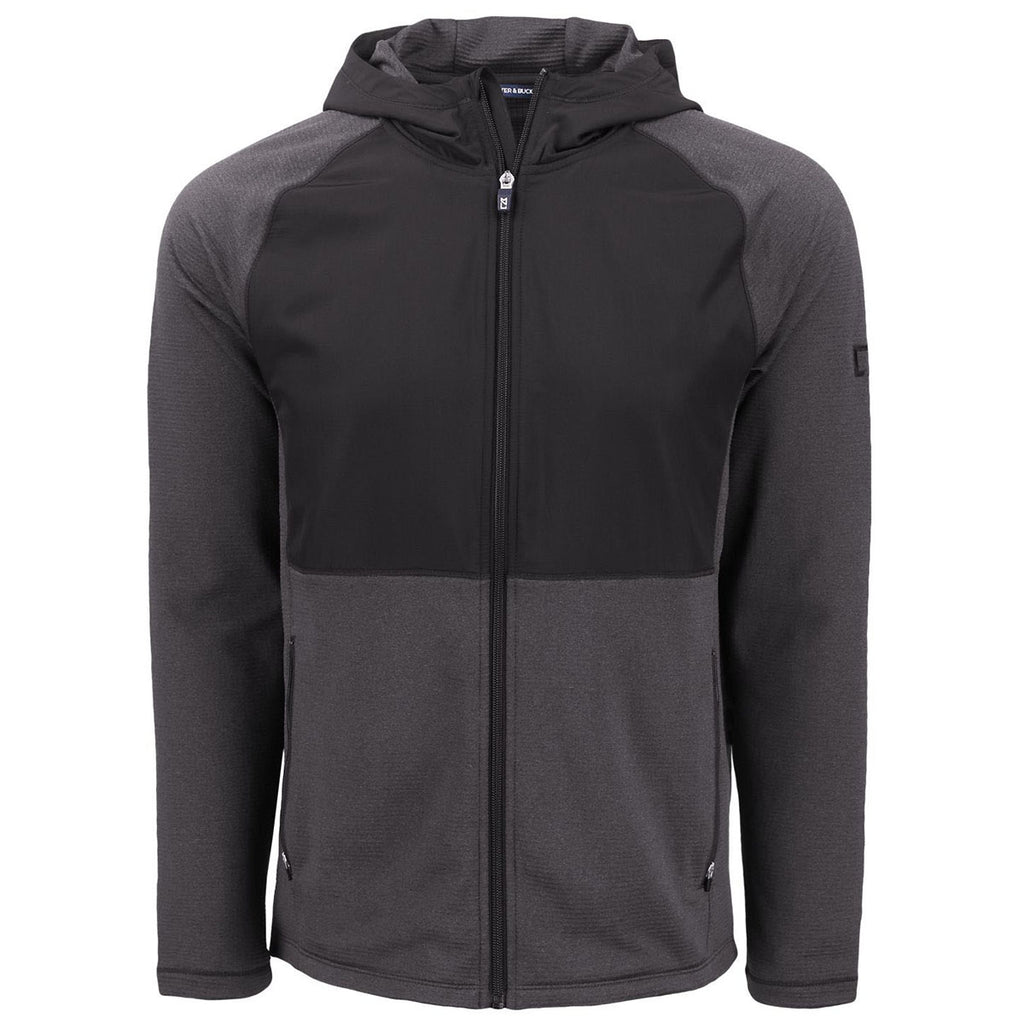 Cutter & Buck Men's Black Heather Peshastin Fleece Recycled Hybrid Jacket