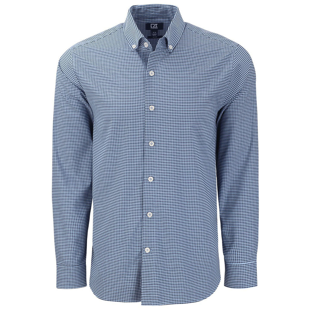 Cutter & Buck Men's Pale Blue/Navy Blue Skyline Epic Confidence Recycled Gingham Long Sleeve Dress Shirt