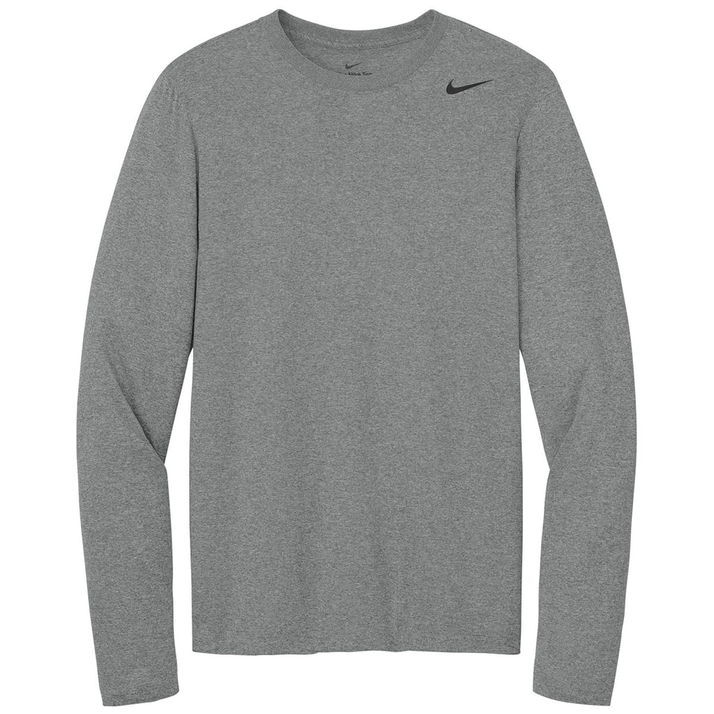 The Nike Men's Carbon Heather Team rLegend Long Sleeve Tee is a corporate-ready performance piece with custom branding appeal. Its moisture-wicking fabric keeps wearers dry and comfortable, while the athletic fit supports active lifestyles. Embroidered or printed logos stand out against the sleek design, making it a versatile option for giveaways, team apparel, or branded merchandise.This product cannot ship outside of the United States.