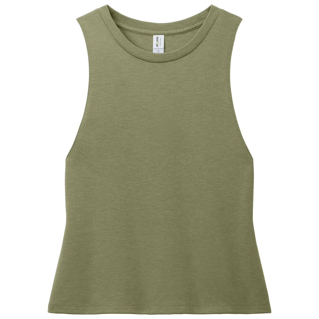 Allmade Women’s Olive You Green Tri-Blend Muscle Tank offers a breathable, custom canvas for corporate events, wellness programs, or everyday movement. Crafted from a planet-friendly blend of organic and recycled materials, it delivers lightweight comfort with a relaxed fit. The modern cut and raw edge details make it equally at home in yoga studios or team-building retreats.