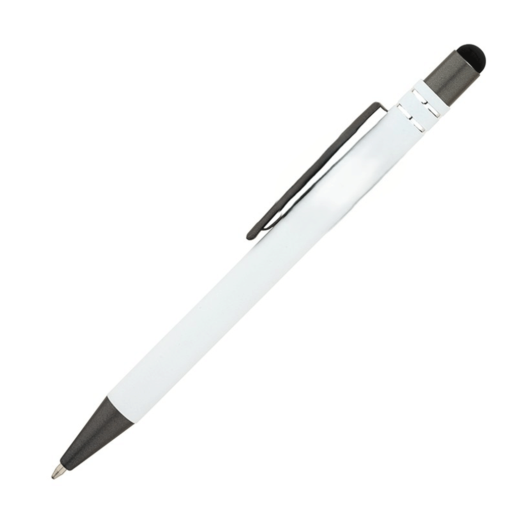 Logomark White Silvana Soft-Touch Ballpoint Pen with Stylus