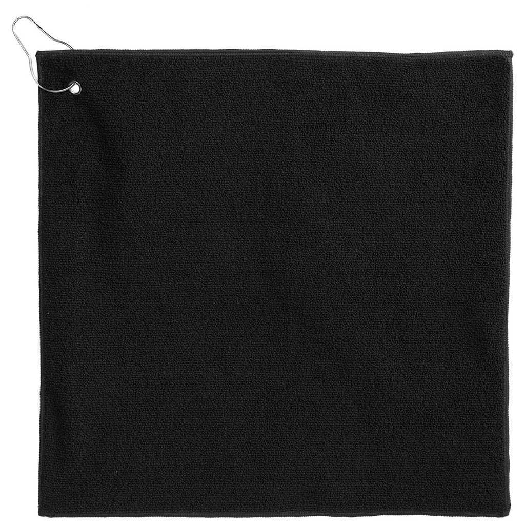 The custom Leed's Black 15" x 15" RPET 300g Terry Polyester Towel is compact and convenient for all the golfers in your life. The easy-to-store, soft terry polyester towel provides gentle cleaning for your clubs, wiping sweat, or anything you need while on the course. The metal grommet and hook mean you can hook this to your bag and be on your way.