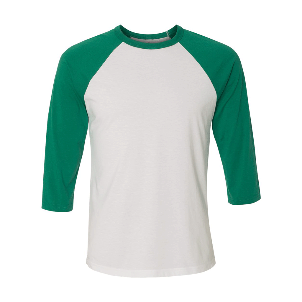 Bella + Canvas Unisex White/Kelly 3/4 Sleeve Baseball T-Shirt