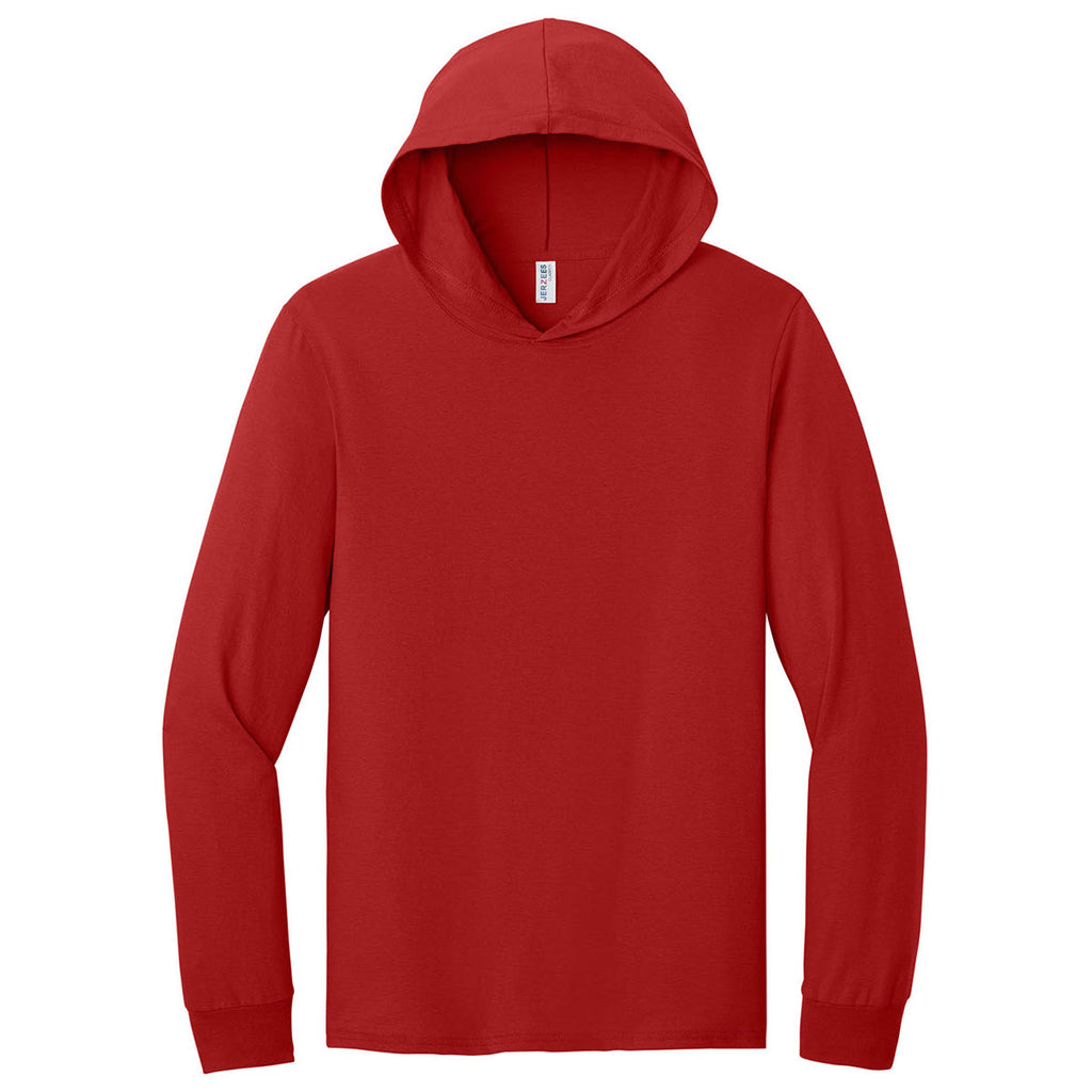 Jerzees Classics Unisex True Red Cotton Long Sleeve Hooded T-Shirt with a custom logo delivers a laid-back yet durable design. Soft cotton fabric provides ultimate comfort, making it perfect for casual outings or layering in colder weather. The hood adds extra warmth and versatility, while the long-sleeve style is ideal for a relaxed yet stylish look that never goes out of fashion.