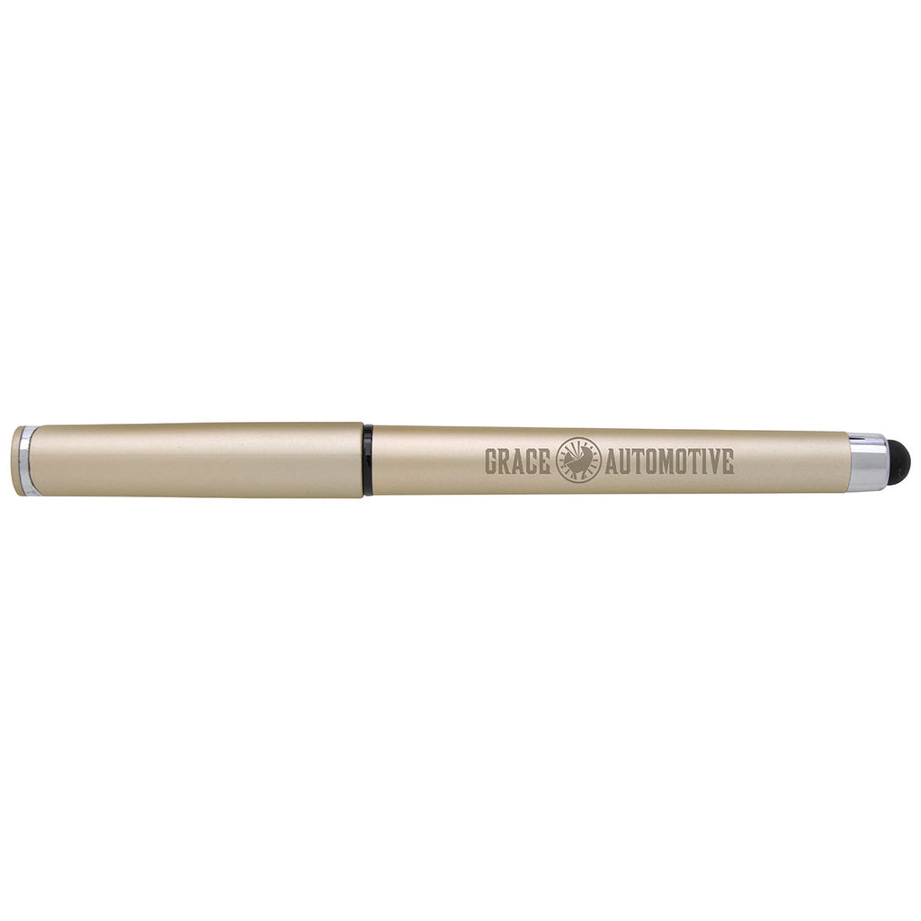 Add your custom logo to the Good Value Metallic Gold with Black Ink Cali Stylus Pen to showcase your brand or organization. This stylus pen makes it easy to go from writing notes to working online with the attached stylus. This pen is ideal for work presentations, taking notes at school, or just sharing with others. Order plenty for your next event or to fill your office.Please note that there may be a delay in processing your 48-Hour order if artwork revisions are required. Orders requiring revisions or additional details will no longer qualify for 48-Hour production. The 48-Hour lead time is for production only, not delivery. You will select your shipping speed at checkout. 48-Hour orders are not eligible for cancellation. All sales are final. Learn more on our FAQ Page.