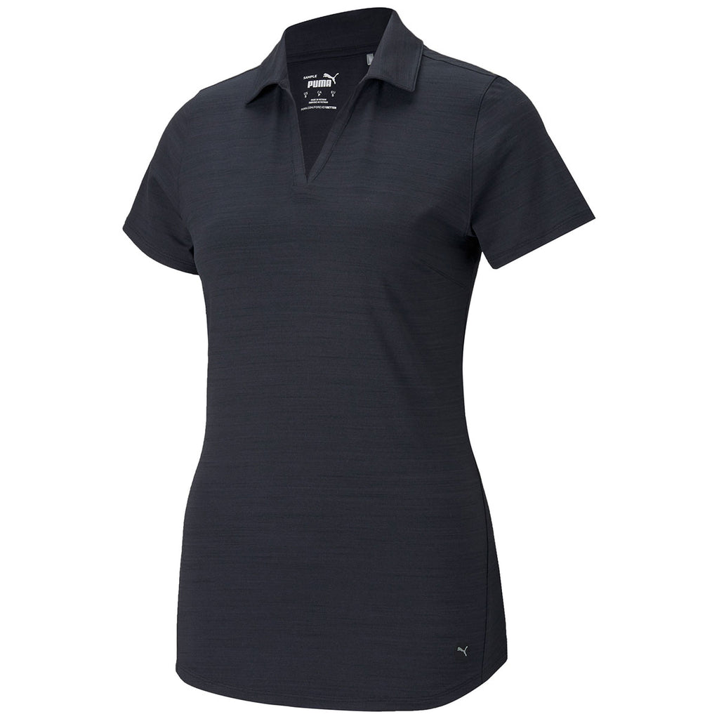 Choose an embroidery for the Puma Golf Women's Puma Black Cloudspun Free Golf Polo for a look that is just as great on the 18th hole as it is in the office. This simple, V-neck polo with cap sleeves is moisture wicking with CloudSpun fabric. The simple design does not distract from the quality of this polo. Add a company logo to use as employee apparel or even corporate apparel in more casual offices or for special events. Great when worn alone or pair this polo with a vest for a look all your own. Perfect to sell in a pro shop or as part of a larger logoed apparel line.