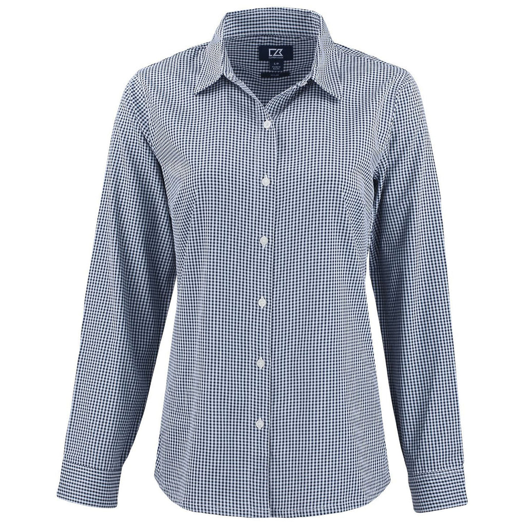 Cutter & Buck Women's Navy Blue/White Skyline Epic Confidence Recycled Gingham Long Sleeve Dress Shirt
