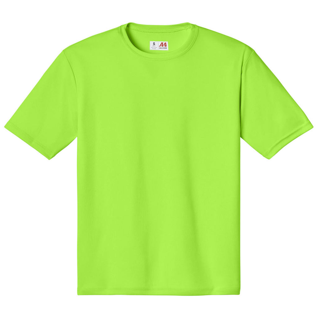 Keep cool with the A4 Men's Lime Cooling Performance Short Sleeve Tee. Built with moisture-wicking fabric, this tee is designed for workouts, sports, or active jobs. Customize it with your logo to create branded apparel that's functional and comfortable. Its lightweight design makes it a reliable choice for corporate promotions or team uniforms.Highlights