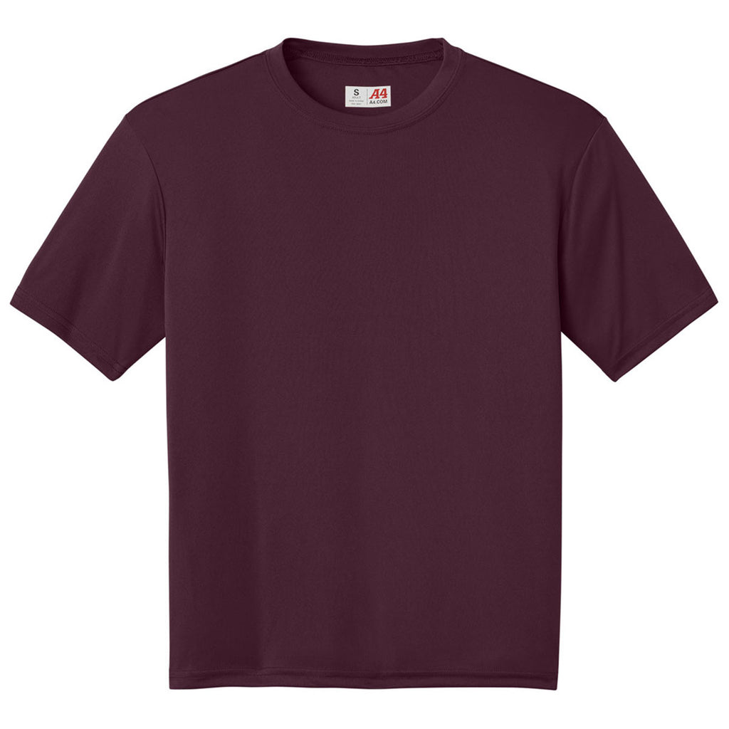 Keep cool with the A4 Men's Maroon Cooling Performance Short Sleeve Tee. Built with moisture-wicking fabric, this tee is designed for workouts, sports, or active jobs. Customize it with your logo to create branded apparel that's functional and comfortable. Its lightweight design makes it a reliable choice for corporate promotions or team uniforms.Highlights
