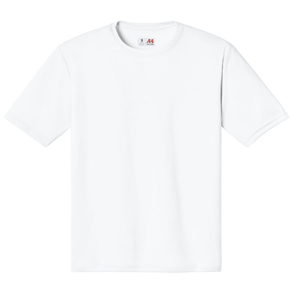 Keep cool with the A4 Men's White Cooling Performance Short Sleeve Tee. Built with moisture-wicking fabric, this tee is designed for workouts, sports, or active jobs. Customize it with your logo to create branded apparel that's functional and comfortable. Its lightweight design makes it a reliable choice for corporate promotions or team uniforms.Corresponding Women's Style: A4 Women's White Cooling Performance Short Sleeve Tee