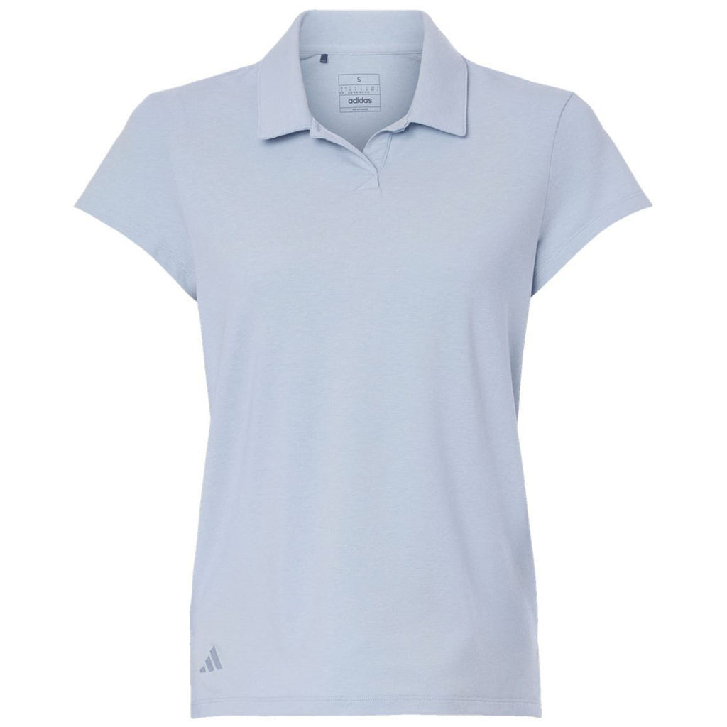 Try out a corporate logo on the Adidas Women's Blue Dawn Melange Blend Polo to create a special option for trade shows, recruiting events, and charity events. The hi-low hem adds flair and side vents create a comfortable ventilation system while wearing. Perfect for golf, tennis, work, and everything in between.This product cannot ship outside of the United States