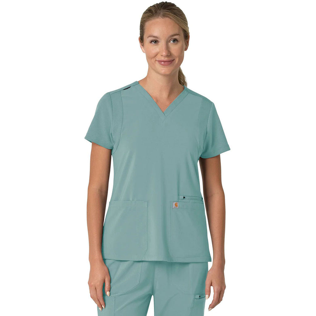 Carhartt Women's Summer Blue Three-Pocket Flex Panel V-Neck Scrub Top