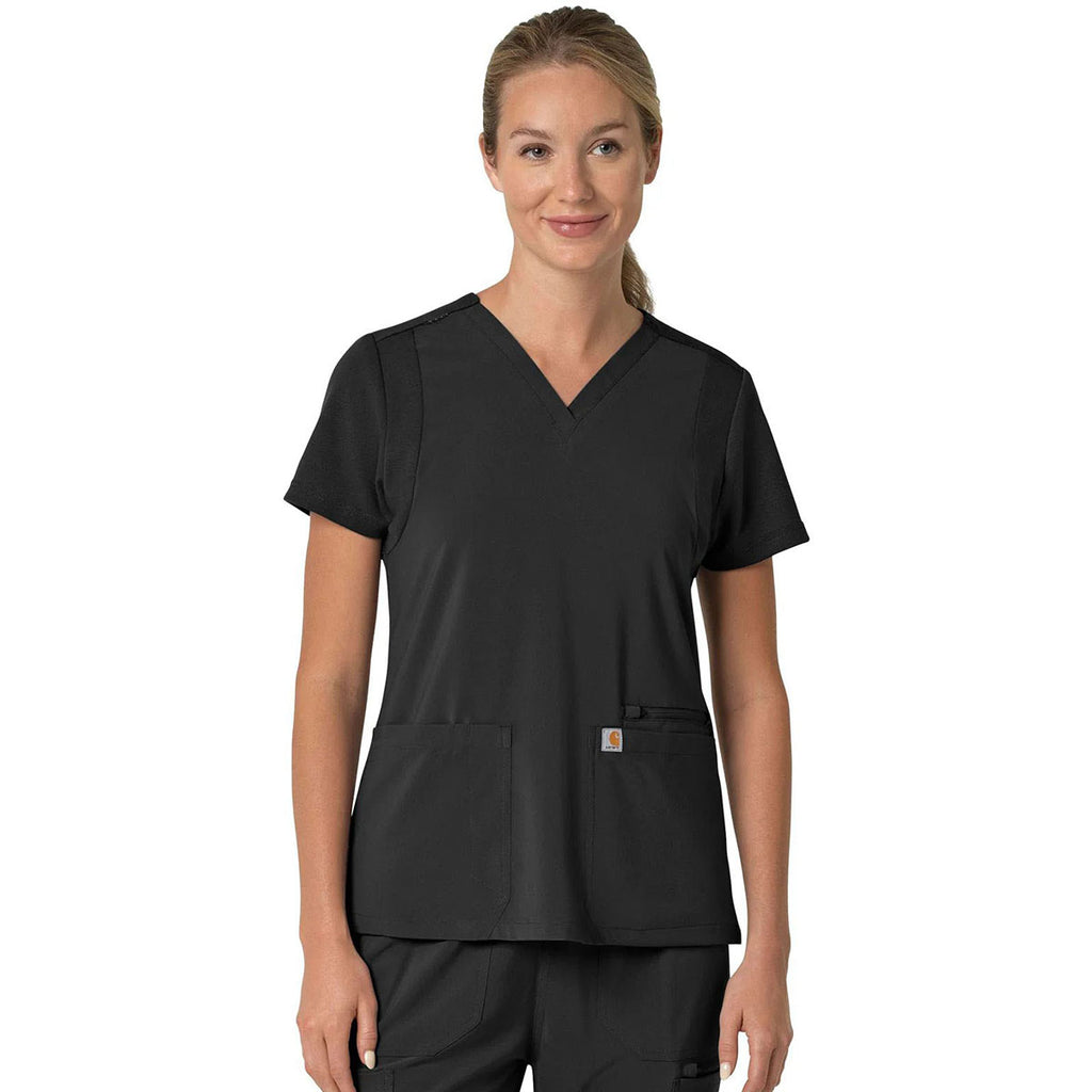 Carhartt Women's Black Three-Pocket Flex Panel V-Neck Scrub Top