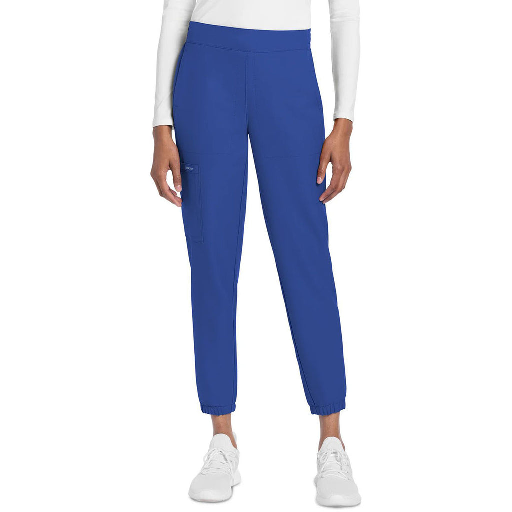 Choose a custom logo for the Cherokee Women's Galaxy Blue 5-Pocket Mid Rise Jogger for a versatile option while at home or working out. This modern classic has a drawstring for adjustability, moisture-wicking, and antimicrobial properties to make sure you look and feel great whether jogging, chilling, or hanging out with friends.