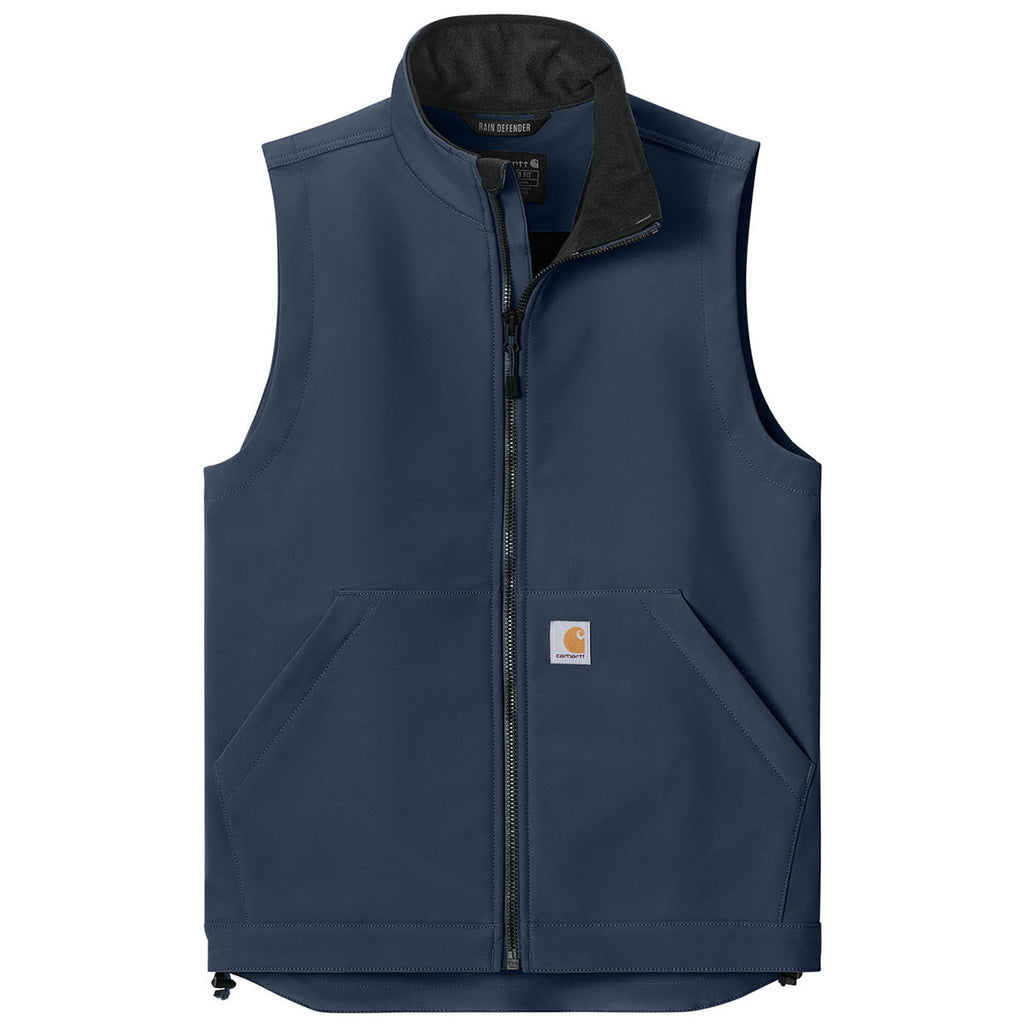 The Carhartt Men's Navy Rain Defender Soft Shell Vest offers a versatile layer for work or casual wear. Its weather-resistant fabric ensures comfort outdoors, while the sleeveless design allows freedom of movement. With corporate customization, it becomes a practical branded piece, ideal for layering during transitional seasons or as part of a team uniform.This product can only ship within the United States and Canada.
