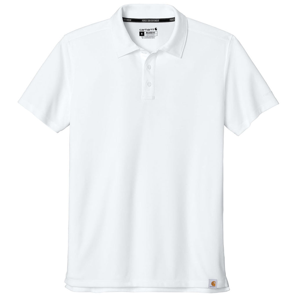 Carhartt Men's White Force Sun Defender Polo with a corporate logo combines rugged durability with sun protection technology. Crafted from lightweight, moisture-wicking fabric, it keeps you cool and comfortable during long hours outdoors. This polo is ideal for workers in the field or anyone needing reliable UV protection without sacrificing style and mobility.