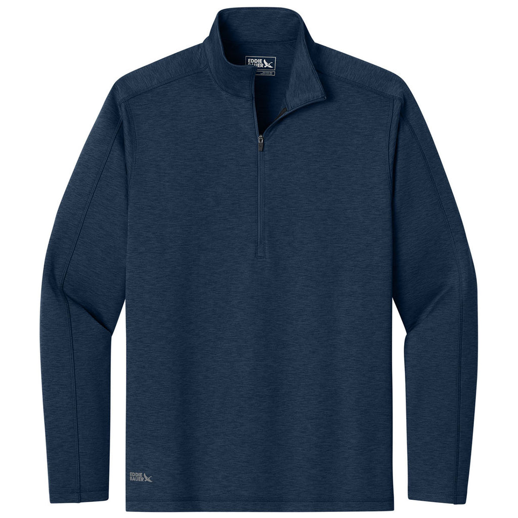 The Eddie Bauer Men's River Blue Navy Heather Adventurer 1/4-Zip makes a versatile custom layer for corporate outings or outdoor wear. Designed with soft, moisture-wicking fabric, it delivers comfort in various settings. The clean silhouette works well with logos, offering a polished yet casual look. Choose this quarter-zip for both professional branding and everyday performance.This product can only ship within the United States, Puerto Rico, Canada, and Mexico.
