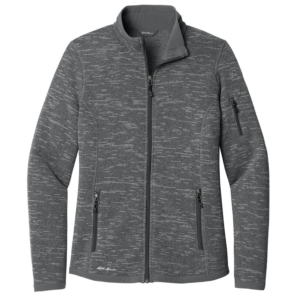A custom outdoorsy look can be created with the Eddie Bauer Women's Dark Grey Heather Sweater Fleece Full Zip. The easy to put on and get off full zip offers serious comfort in 100% polyester. Create a dressy casual look with the cadet collar, open cuffs, open hem, and exposed coil zippers. Add your corporate embroidery for a look that works as a company uniform or as the employee gift that everyone will love. Perfect as end of the year gifts or prizes at a corporate event, these full zip sweaters have the thing every woman wants, pockets. Choose this lightweight sweater to customize and meet your needs.