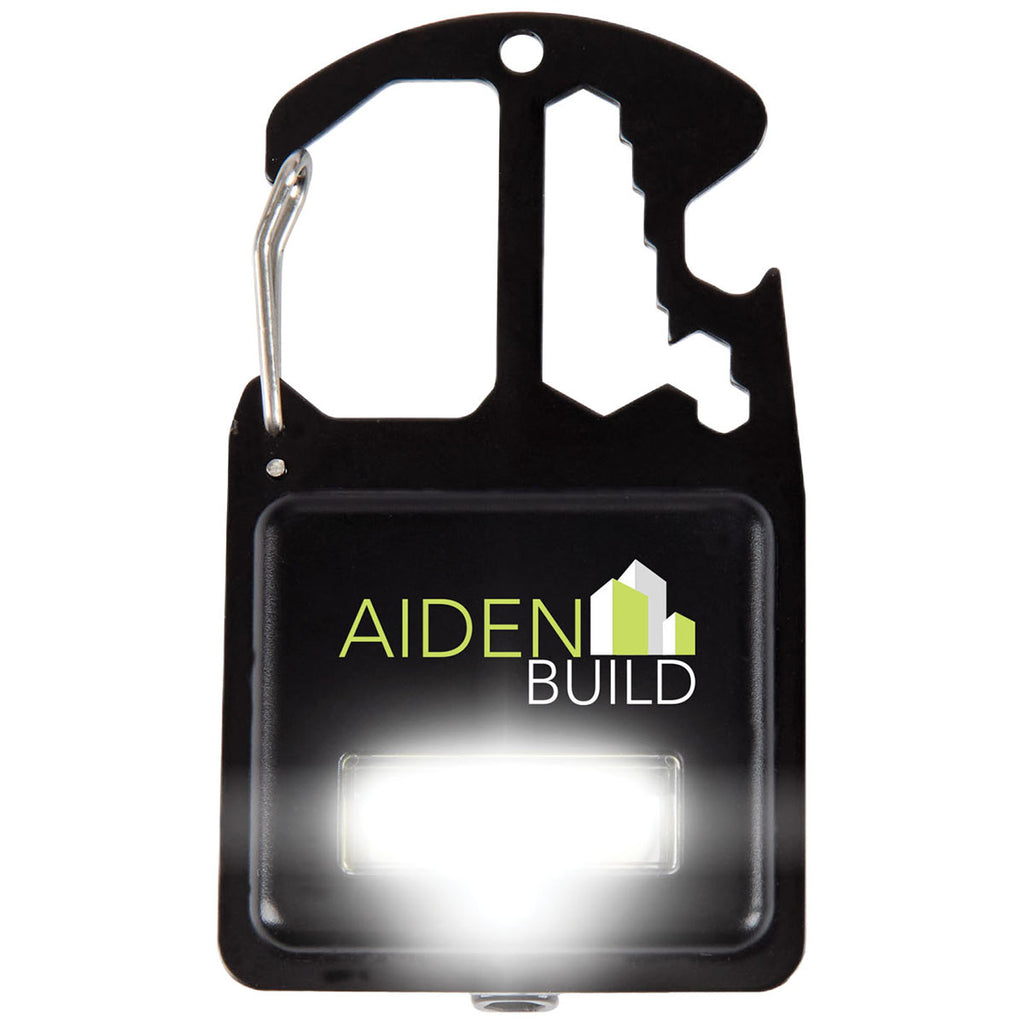 The Logomark Black Bryson Mini Multi-Tool COB Work Light is a versatile custom gadget that is perfect for everyday carry or emergency kits. Featuring a bright COB LED light and multiple tools in one compact design, it suits tradespeople, outdoor enthusiasts, or promotional giveaways. Durable and handy, it offers constant brand visibility in practical settings.