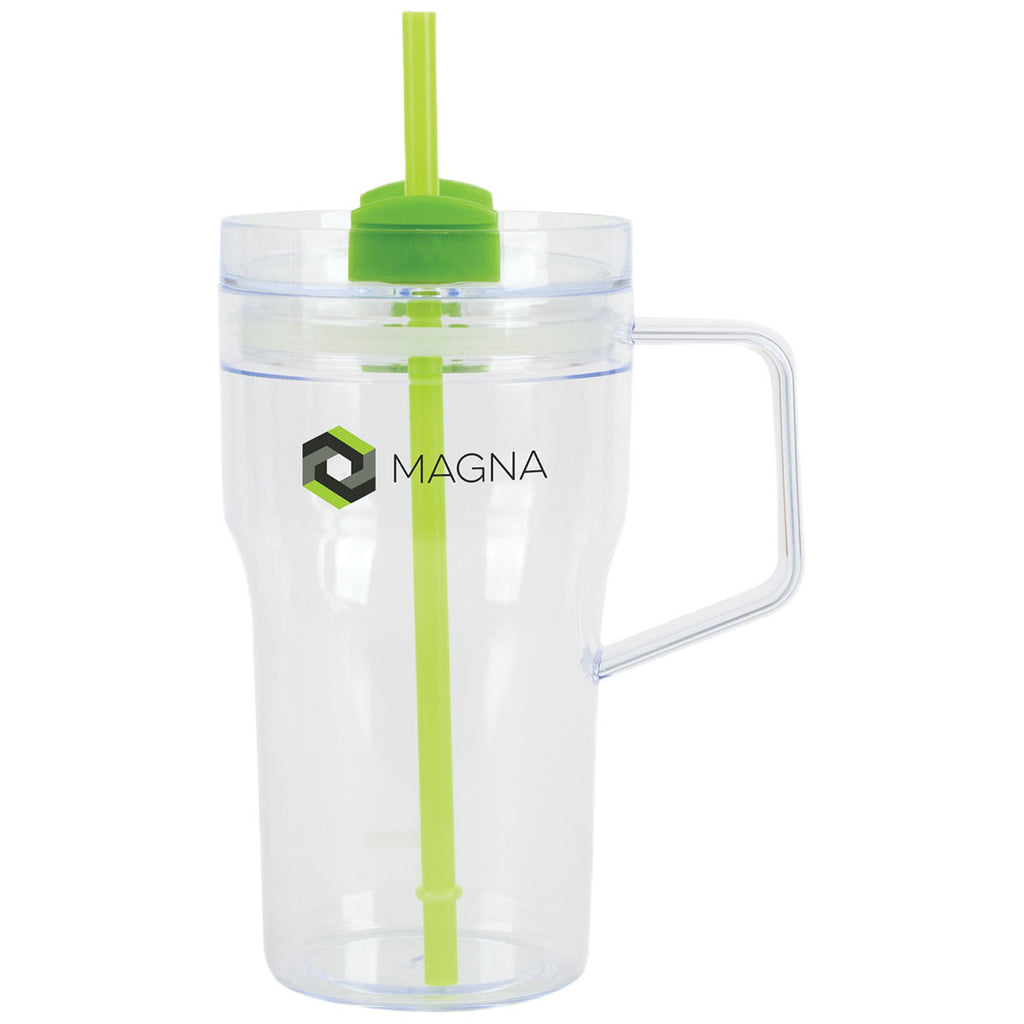 The Logomark Lime Elliott 20 oz. Clear AS Travel Mug is a contemporary corporate drinkware choice with transparent style. Featuring a spill-resistant lid and wide opening, it accommodates iced or hot beverages, fruit infusions, and smoothies. Lightweight and reusable, it's perfect for office use, wellness gifting, or branded retail seeking vibrant, functional hydration tools.