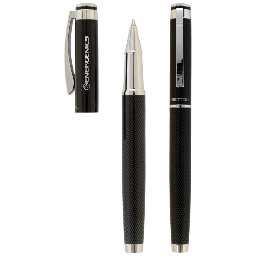 The Bettoni Black Lazio Recycled Brass Cap-Off Rollerball Pen offers refined corporate elegance in a sustainable form. Made from recycled brass with a cap-off design, it delivers smooth writing and timeless appeal. Perfect for executive gifting, awards, or premium branding that values quality and conscious materials.The minimum order for this product is 50 pieces.