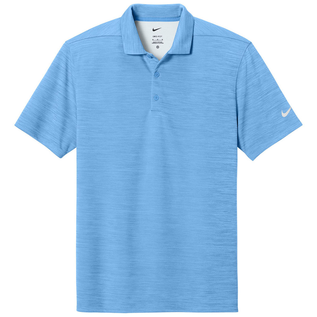 Nike Men's University Blue Dri-FIT Striated Polo blends custom performance with style. Featuring moisture-wicking technology, it ensures you stay dry and comfortable, whether on the golf course or at the office. The subtle striated texture adds a modern touch, making this polo a versatile choice for professional and casual settings.