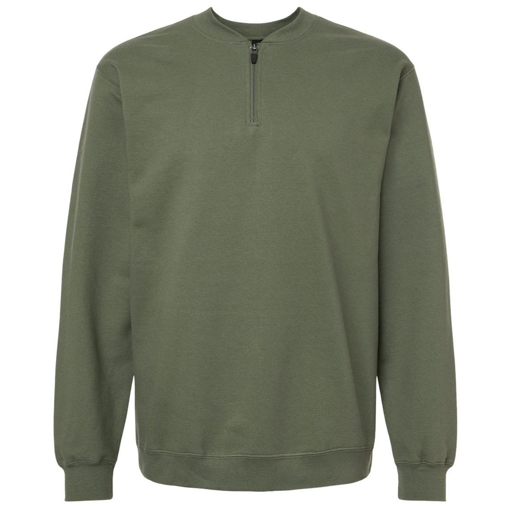 The Gildan Unisex Military Green Midweight 1/4 Zip Sweatshirt is a versatile corporate staple designed for transitional weather and easy layering. Soft fleece inside and a stand-up collar are great for on-the-go teams or casual staff apparel. Choose this custom option when you want professional comfort without the bulk.Highlights