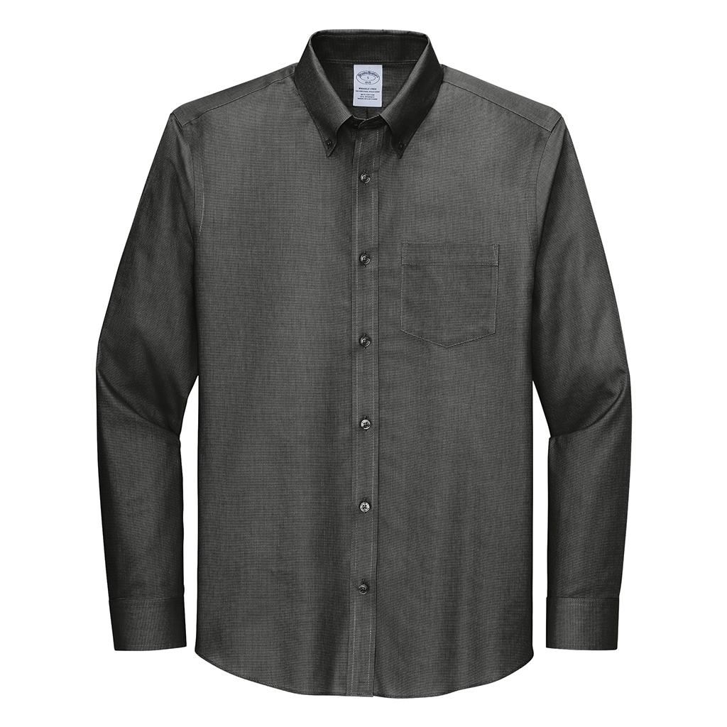 Brooks Brothers Men's Deep Black Tall Wrinkle-Free Stretch Nailhead Shirt with a custom logo is the perfect balance between professional and business-casual attire. The wrinkle-free treatment will keep you looking sharp all day whether in the office or on the road trying to make another sale. Add a corporate logo to use as a uniform at events or create personalized gifts. Place an order today.