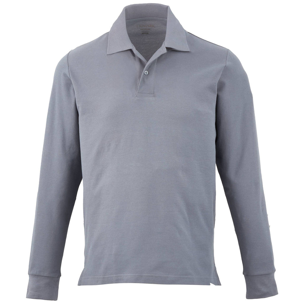 Elevate Men's Steel Grey Palo Long Sleeve 100% Cotton Pique Polo