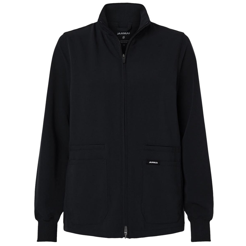Jaanuu Women's Black Ceri Essential Full-Zip 6-Pocket Scrub Jacket